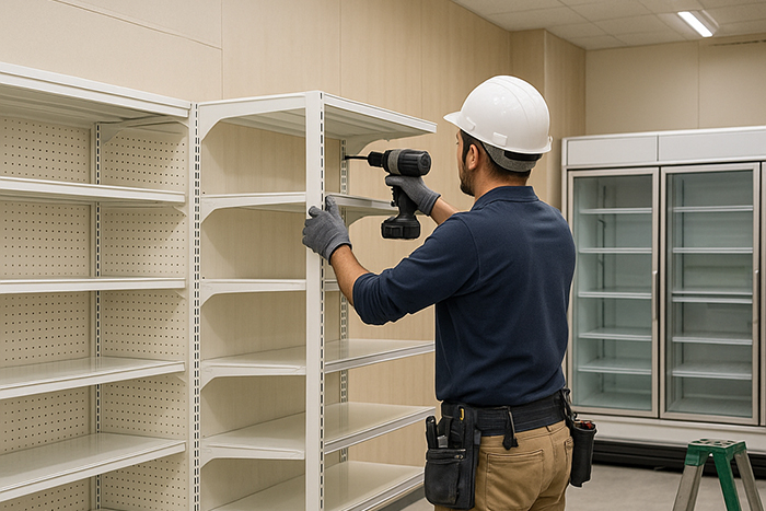 什器の配送、組立・設 置を行っています。什器とは、店舗 における商用の器材のことで、ラックやショーケース・テーブルのほ か、アクリルボックスや商品ディ スプレイ、陳列棚、小型の雑貨など のことです。